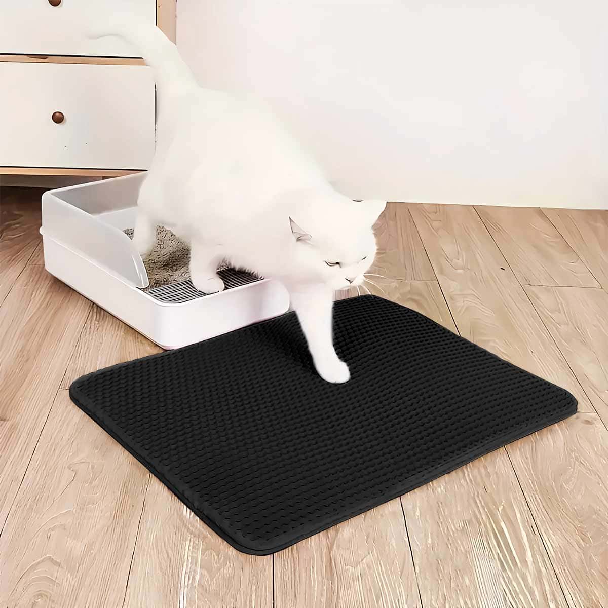 Control total de la arena: Su diseño de doble capa atrapa eficazmente la arena que queda en las patas de tu gato, evitando que se esparza por el suelo.